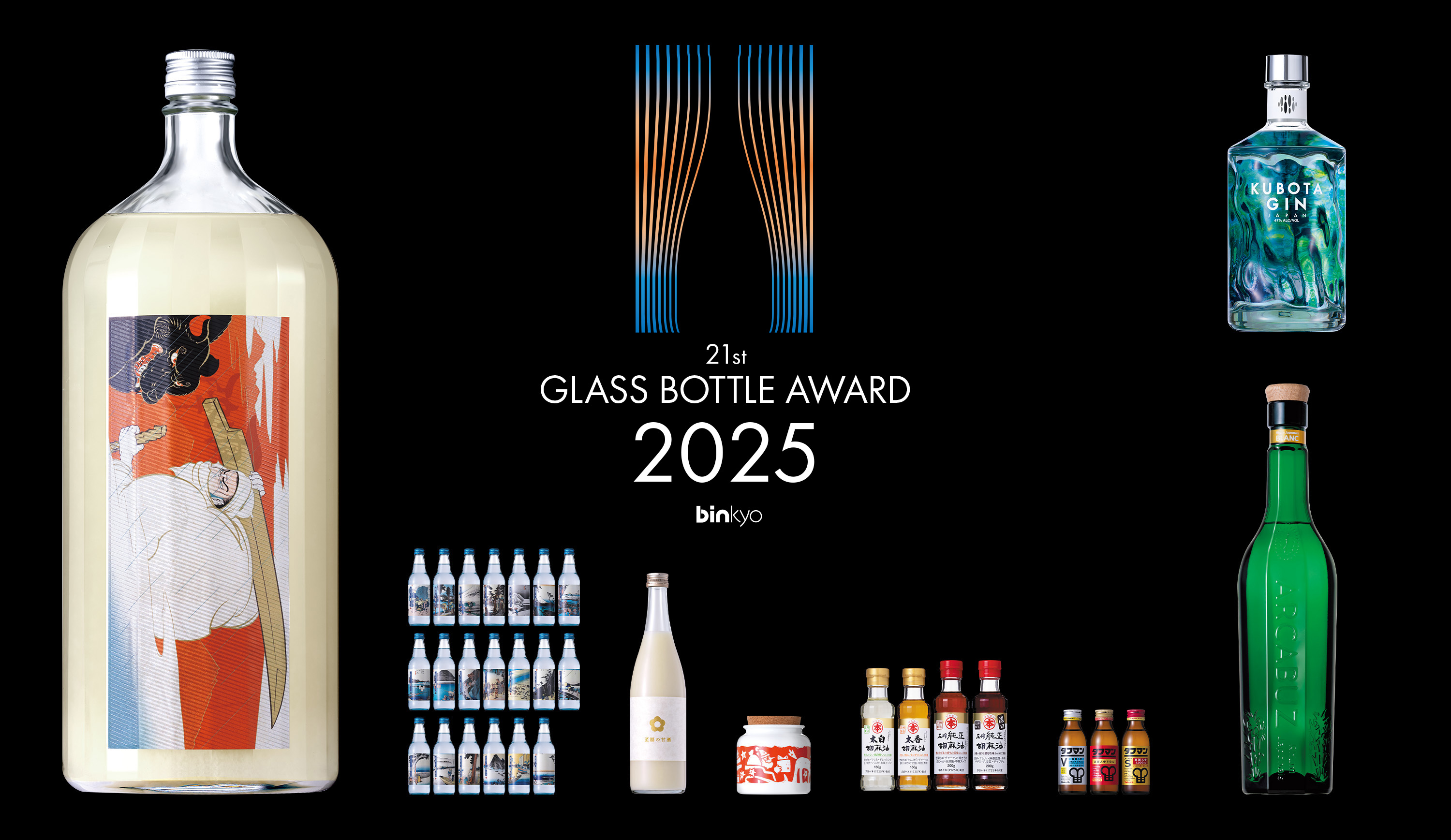 ガラスびんアワードは、日本ガラスびん協会が主催する業界最大級のイベントです。1年間に新発売されたガラスびん商品を対象に、デザイン性・機能性・環境性などさまざまな視点から審査し、優れた商品を表彰します。